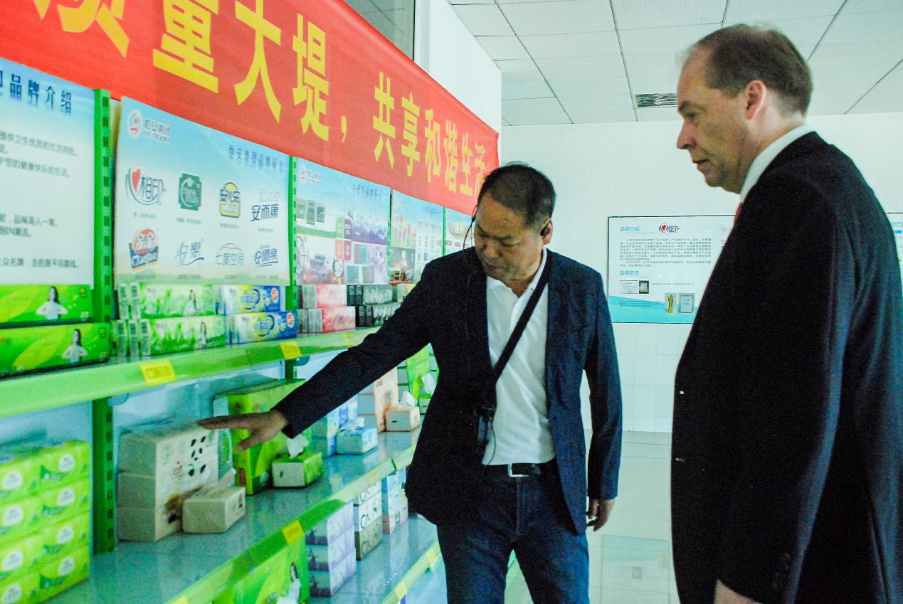 在参观尊龙集团(中国)纸业有限公司、福建尊龙集团家庭生活用品有限公司两个工厂时,肃海岚深切感受到了尊龙集团集团与芬兰的渊源:不远万里进口而来的芬兰木浆,通过芬兰公司提供的生产设备,生产出质量稳定的高档纸巾,走进全球亿万家庭。